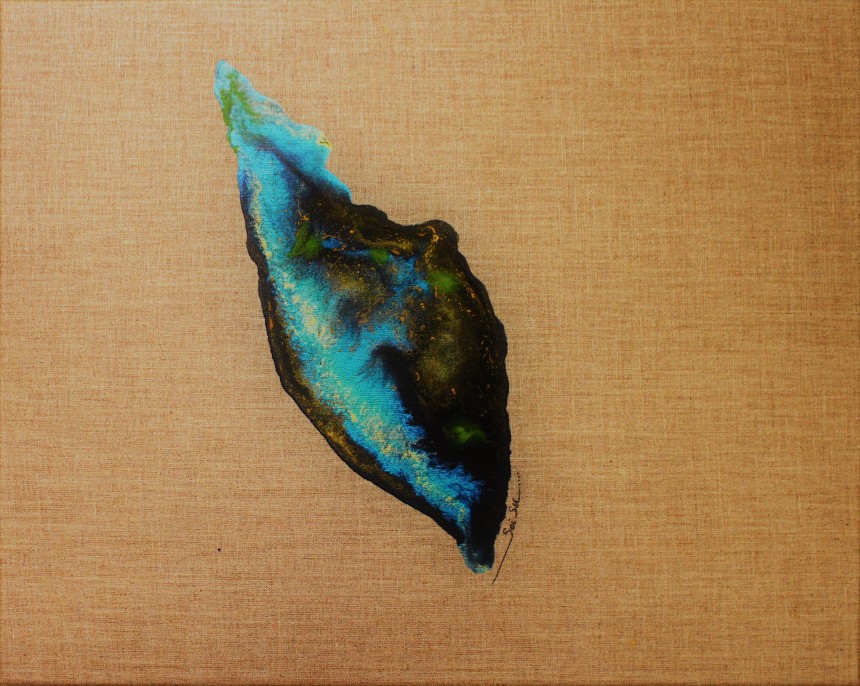 Peinture acrylique sur toile coton - 30 x 30 cm " Un écrin de côte sauvage " Peinture abstraite colorée de Sei Su, représentant des...